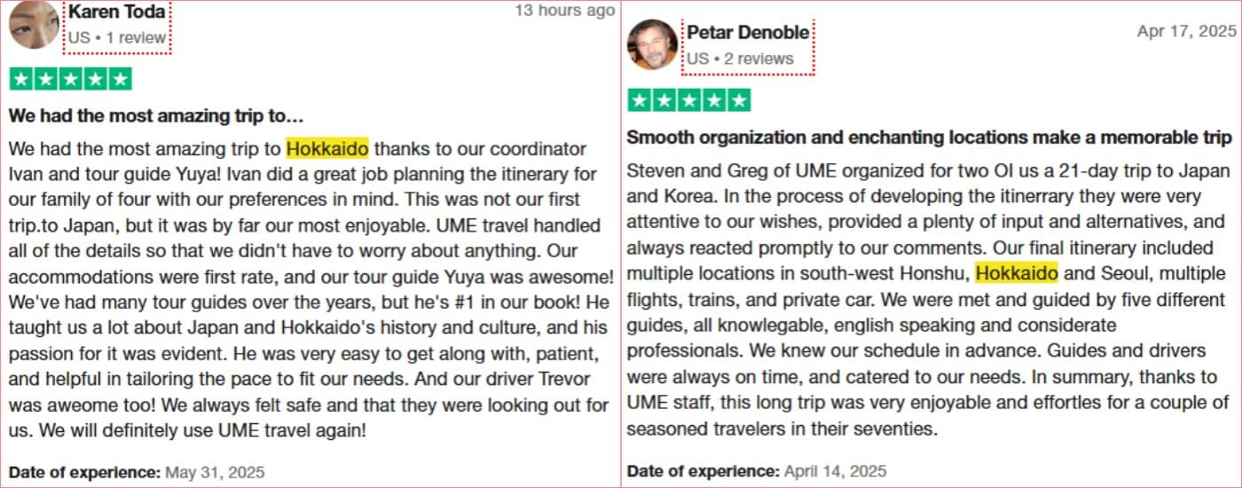 Real Trustpilot Reviews from Travelers Who Explored Hokkaido with Our Private Guided Tours