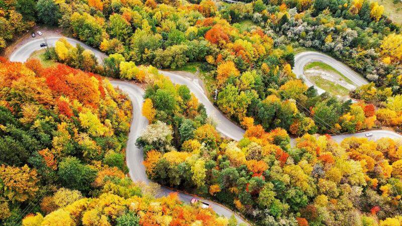 Iroha Slope, or Irohazaka, is a ramp between Lake Chuzenji in Nikko City, Tochigi Prefecture in Japan National Route 120. There are 48 curves, and during Nikko autumn, the surrounding maple trees are dyed a brilliant red, making it a famous destination to witness the spectacular Nikko fall colors. Because there is a 500m drop from the bottom of the slope to the top, the colors of the autumn leaves are subtly different, and you can enjoy the changing colors of the fall foliage as you drive along. Even if you don't take an aerial photo, you can still capture the winding mountain road looming over the enchanting red leaves.