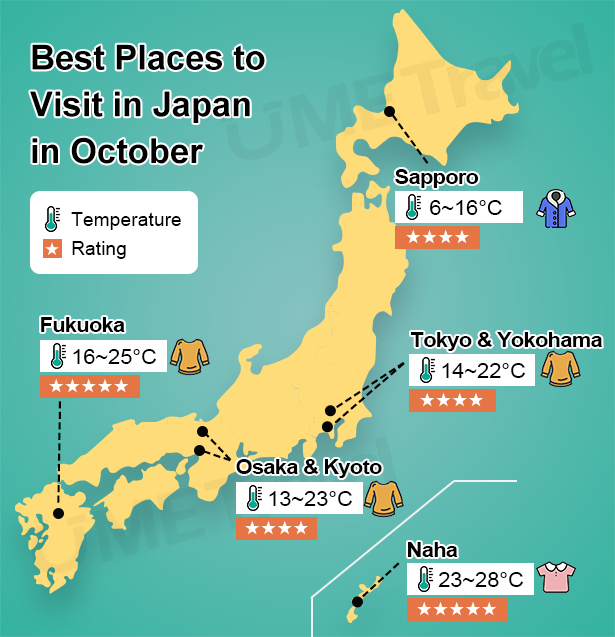 Please note that early October may still experience the residual effects of typhoons, especially during the first week. For the most up-to-date forecasts, please visit the Japan Meteorological Agency.