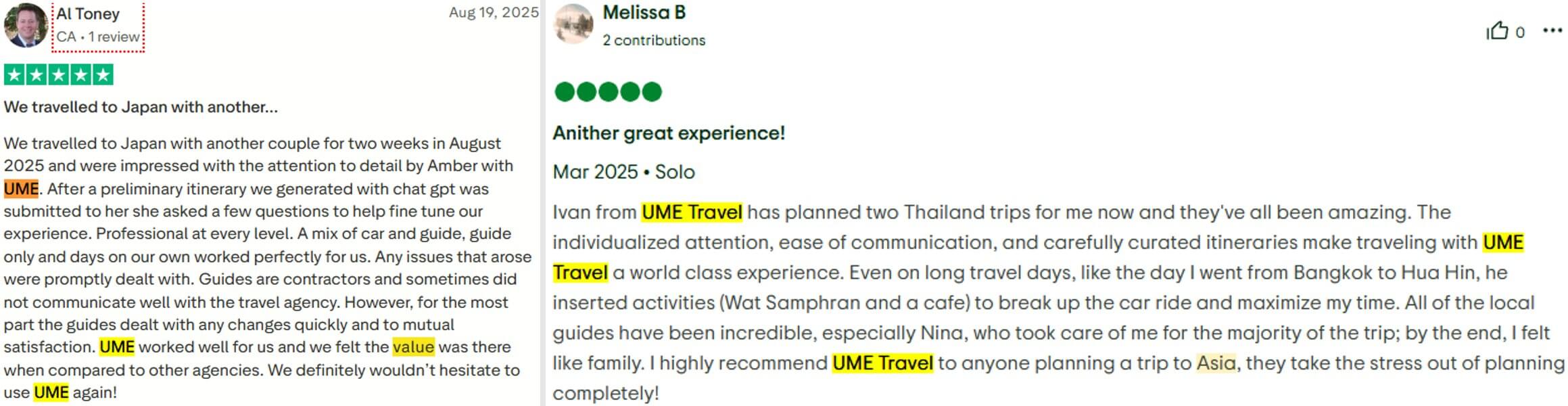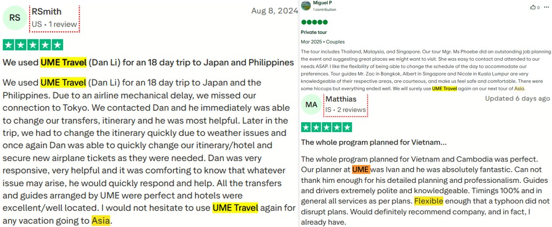 UME Travel Reviews about Smooth Logistics & Stress-Free Planning