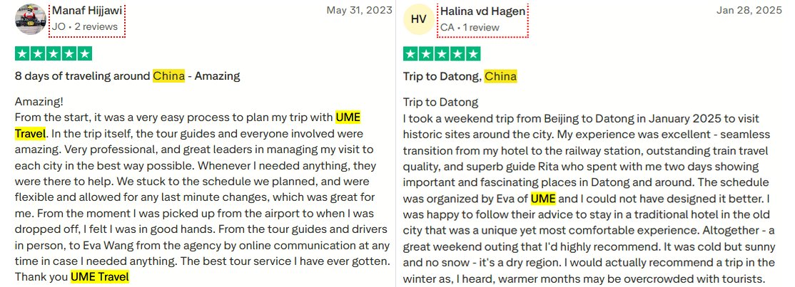 Planning a trip to China often raises questions about reliability, communication, and how smoothly everything will actually work on the ground. That's why many travelers turn to independent review platforms like Trustpilot and TripAdvisor before booking. Below are real experiences shared by travelers who explored China with UME Travel.